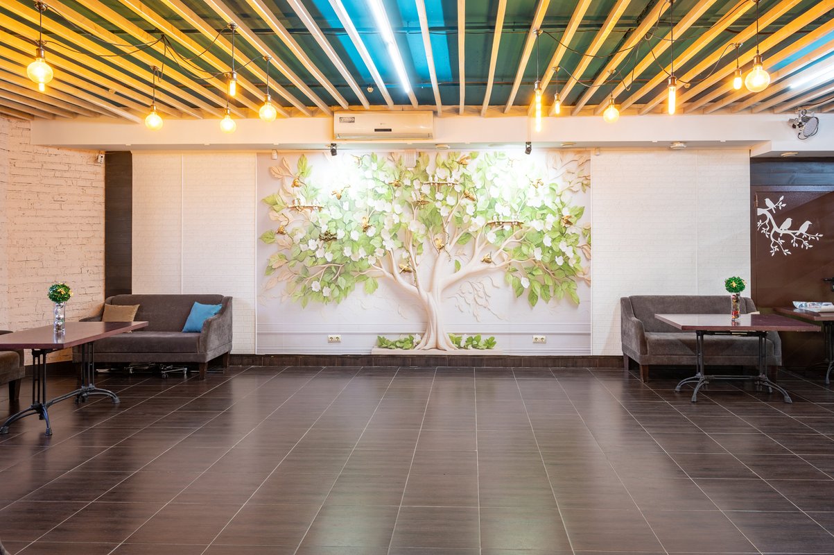 Если за окном стоит тёплая погода, лучше чаще находиться не в помещениях, а на улице. И не только чтобы прогуляться, но и встретиться с близкими и вкусно поесть. Для этого у банкетной службы DOZARI имеется веранда с выходом на улицу.